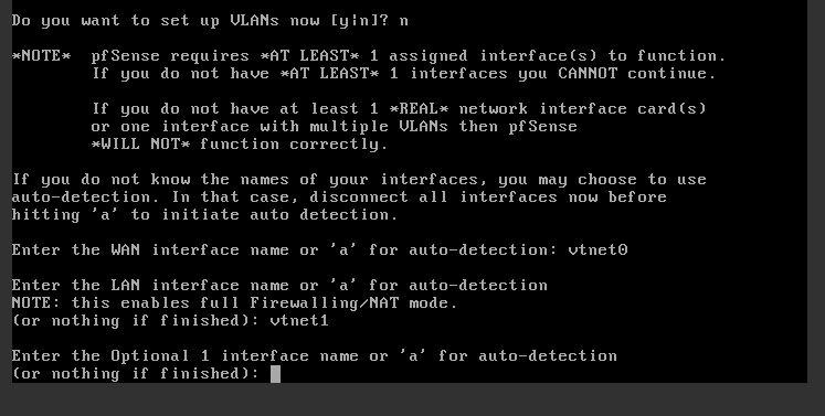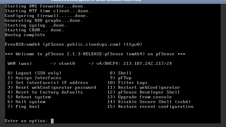 Настройка pfSense через консоль при первом запуске: